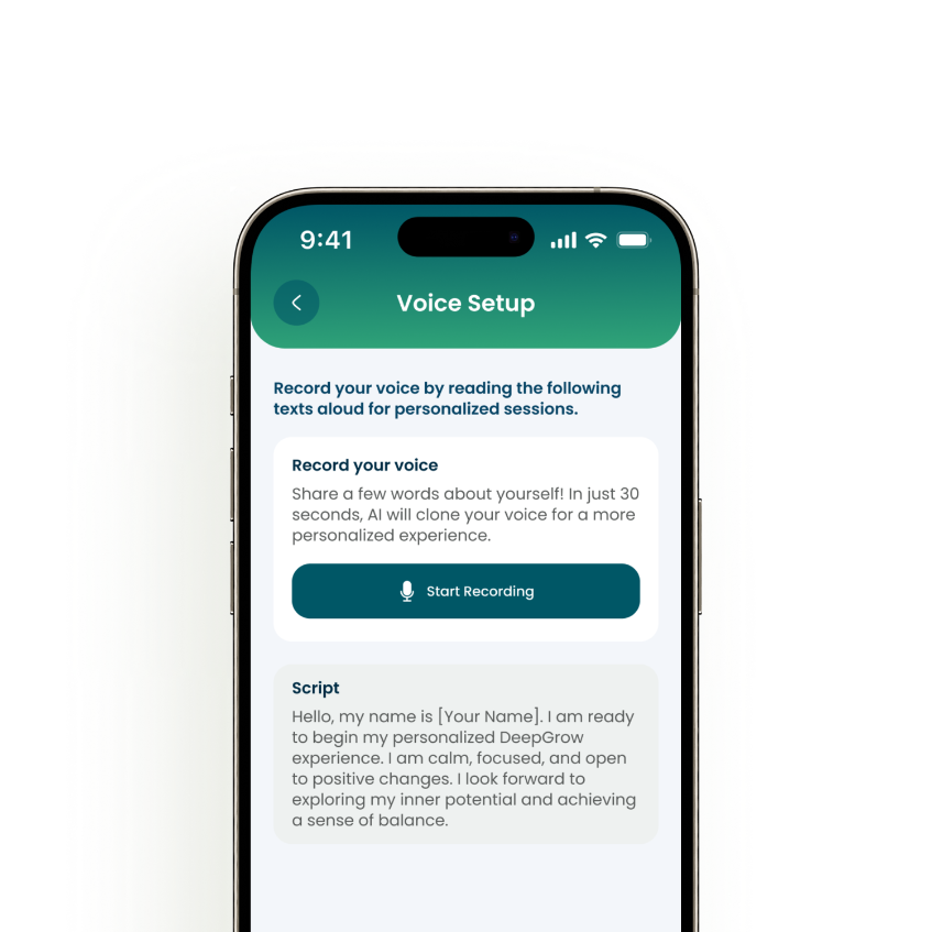 Choose how it sounds. Adjust music, tone, or record your own voice—DeepGrow evolves with what your mind responds to most.